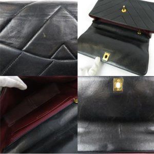 CHANEL Lambskin Chevron Quilted CC Dual Handle Flap Bag Black