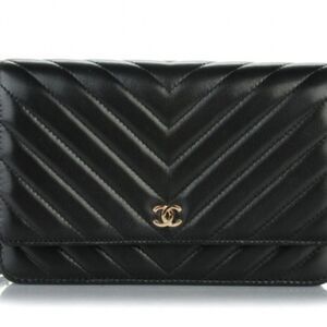 CHANEL Lambskin Chevron Wallet On Chain WOC Black w/ Dust Bag