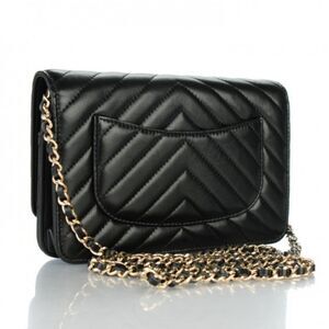 CHANEL Lambskin Chevron Wallet On Chain WOC Black