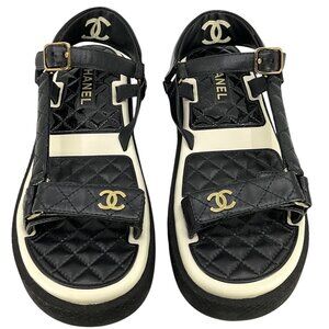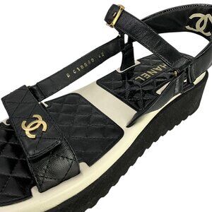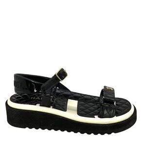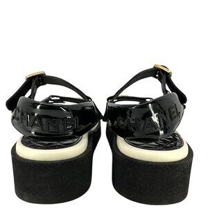 CHANEL Lambskin Patent Logo Platform Sandals Size 42