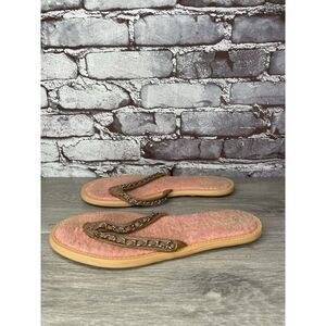 Selling Selling CHANEL Lambskin CC Chain Pink Brown Leather Designer Thong Sandals Women’s Sz 40EU/9.5M US