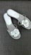 Chanel camellia all leather sandal has dove gray sueded foot bed & thong with accents of white patent leather, including the camellia adorned with the CC logo. These are marked a size 38 & fit me like a size 7. They measure approximately 9.75”@ their longest & 3.5”@ their widest. Please see images for very good condition. Most wear is on the sole but there is some discoloration to some flower petals & color loss to CC logo. The flower petals do rotate so discoloration may not be noticeable. These ship from no smoke/pet home with dustbag.