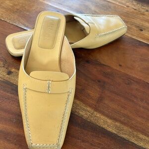 Lovely pair of Chanel mules tan light brown color in good preowned condition. 37 1/2