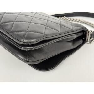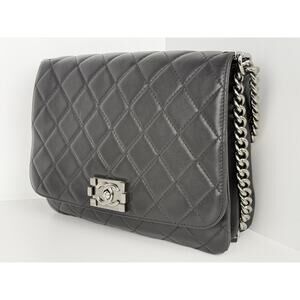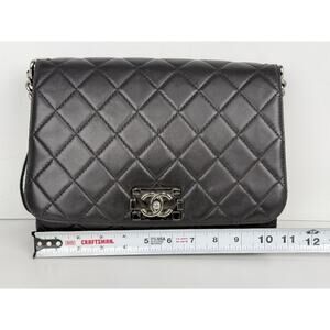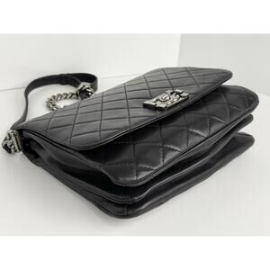 CHANEL Leather Quilted Boy Messenger Bag Black with Silver Hardware B-7