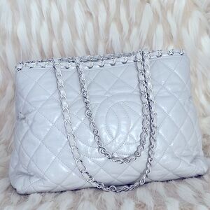 CHANEL leather lamb white bag size 9-1/2 inches tall 12 -1/2 inches long side 6 inches