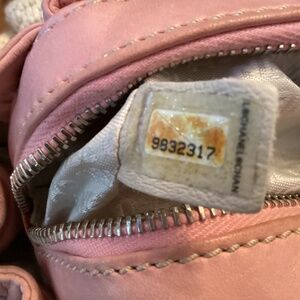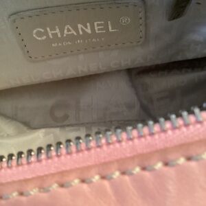 Authentic CHANEL handbag with baby soft pink leather and woven fabric! This Preloved bag will hold all of your essentials and looks good dressed up or down. Good condition with a slight smudge on the front that can be cleaned with leather cleaner.