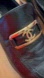 The shoes feature a gold Chanel logo and a 2 inch block heel.