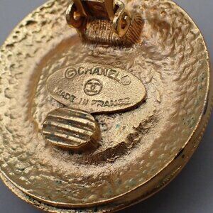 CHANEL Logo Imitation Pearl Round Button Earrings Clip-On GHW Vintage