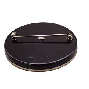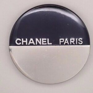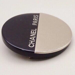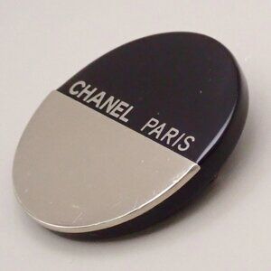 CHANEL Logo Round Bicolor Brooch 00A Metal Plastic Black Silver France 83KA600
