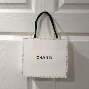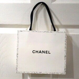 CHANEL Luxury Camellia Paper Shopping Bag – Authentic White & Black 8.5x7.5x3.5