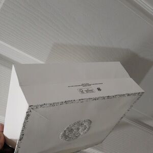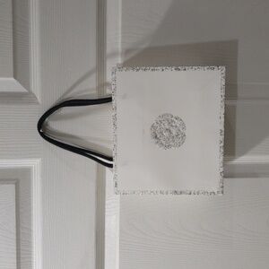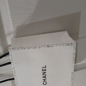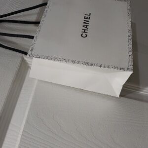 Shop this authentic Chanel white and black paper shopping gift bag featuring the iconic Camellia flower design and black rope handles. Perfect for gifting, luxury storage, or collectors, this 8.5x7.5x3.5” bag is in excellent used condition. It is ideal for designer packaging or décor. Ships securely and quickly!