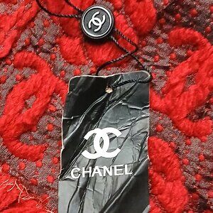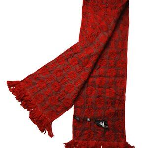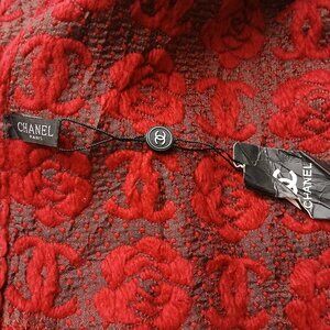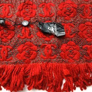 CHANEL Luxury Vintage VWT Red Rose Motif Cashmere Silk Fringed Shawl Wrap Scarf