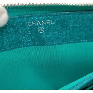 CHANEL METALLIC CALF SKIN BLUE WALLET EUC