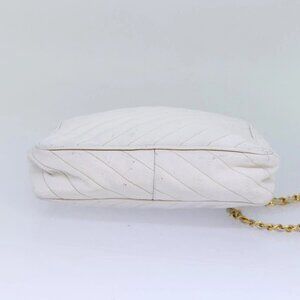 CHANEL Mademoiselle Chain Shoulder Bag Calf Skin White Gold Silver CC Auth b...