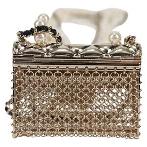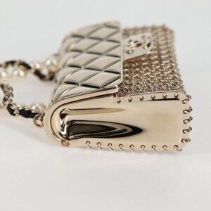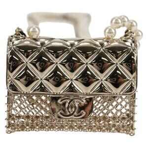 CHANEL Matelasse 2021S Pearl Necklace Metal Gold tone CC Auth 131853SM