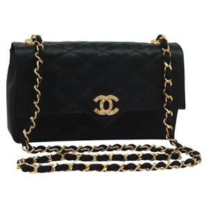 CHANEL Matelasse 23 Single Flap Chain Bag Satin Black Gold CC Auth