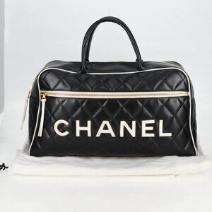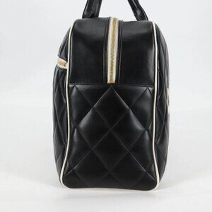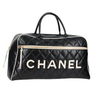 CHANEL Matelasse Boston Bag Calf Skin Black CC Auth 127925V