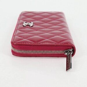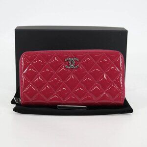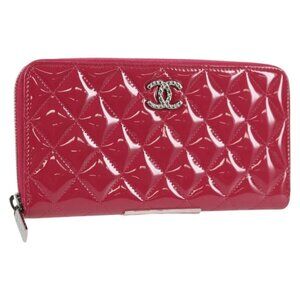 CHANEL Matelasse Brilliant Long Wallet Enamel Pink Silver CC