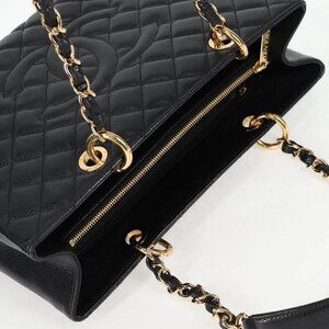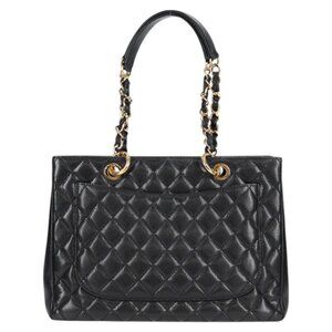 CHANEL Matelasse COCO Mark Chain Bag Grained Calf Skin Black Gold CC Auth