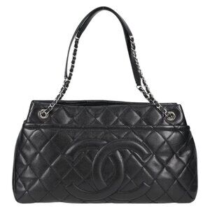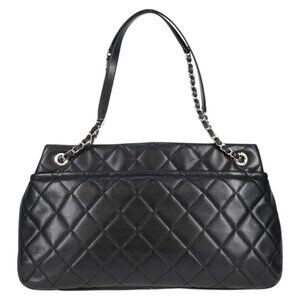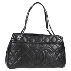 CHANEL Matelasse COCO Mark Chain Bag Grained Calf Skin Black Silver CC Auth