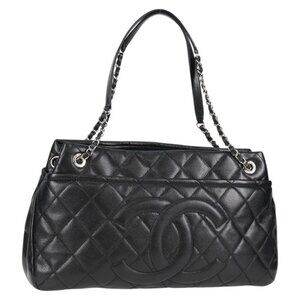 CHANEL Matelasse COCO Mark Chain Bag Grained Calf Skin Black Silver CC Auth ...