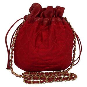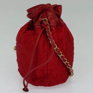 CHANEL Matelasse COCO Mark Chain Shoulder Bag Satin Red Gold CC Auth BA2019