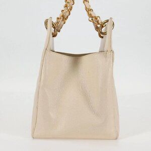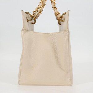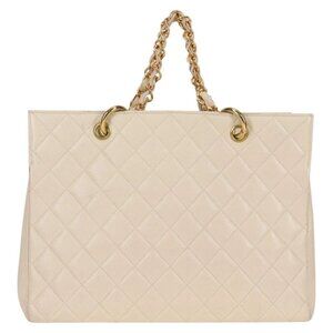 CHANEL Matelasse COCO Mark Chain Tote Bag Calf Skin Vanilla Gold CC Auth yk18012