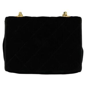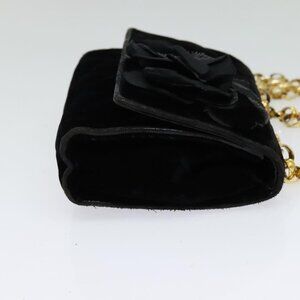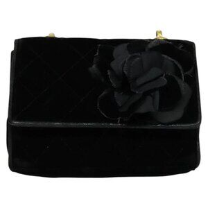 CHANEL Matelasse Camellia Chain Shoulder Bag Velor Black Gold CC Auth bs26015