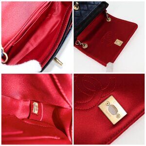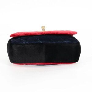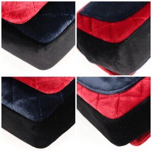 CHANEL Matelasse Camellia Chain Shoulder Bag Velor Red CC Auth KD378SM
