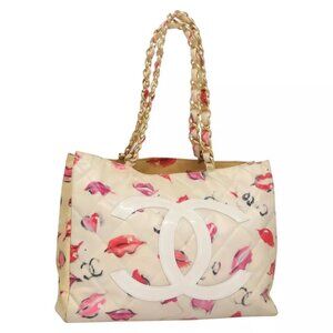 CHANEL Matelasse Chain COCO Mark Lip Tote Bag Vinyl Red CC Auth yk17404