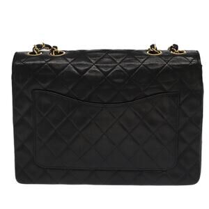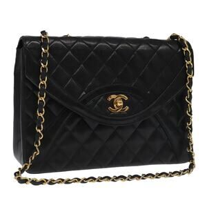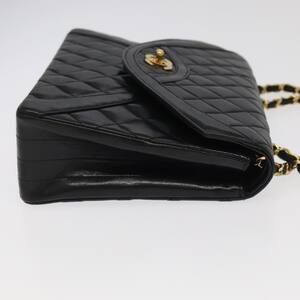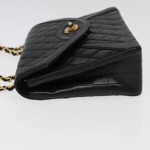 CHANEL Matelasse Chain Hand Bag Lamb Skin Black Gold CC