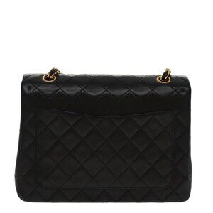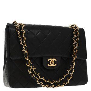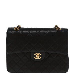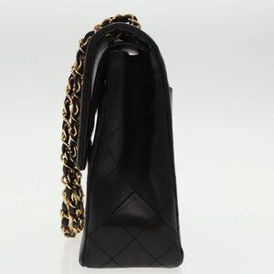 CHANEL Matelasse Chain Hand Bag Lamb Skin Black Gold CC Auth 95715AV