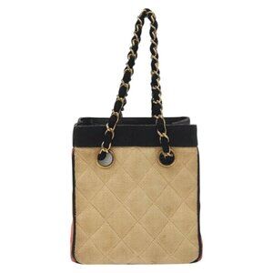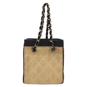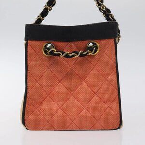 CHANEL Matelasse Chain Hand Bag Raffia Orange Gold CC Auth 130503