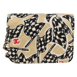 CHANEL Matelasse Chain Pouch Canvas Beige Gold CC Auth bs27947M