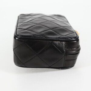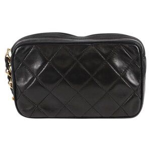 CHANEL Matelasse Chain Pouch Shoulder Bag Lamb Skin Black Gold CC Auth 125974V