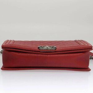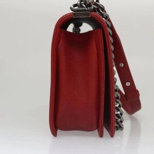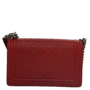 CHANEL Matelasse Chain Shoulder Bag Calf Skin Red Gold