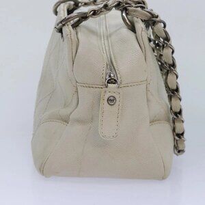 CHANEL Matelasse Chain Shoulder Bag Calf Skin White Silver