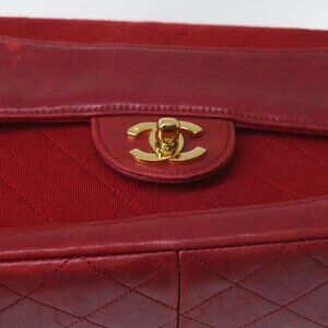 CHANEL Matelasse Chain Shoulder Bag Canvas Red CC Auth 59869A