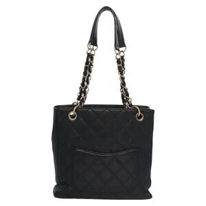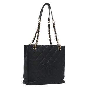 CHANEL Matelasse Chain Shoulder Bag Caviar Skin Black Gold CC