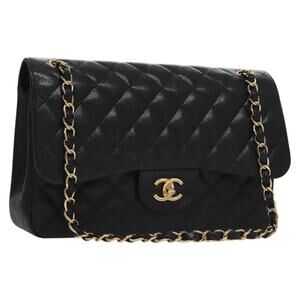 CHANEL Matelasse Chain Shoulder Bag Caviar Skin Black Gold CC