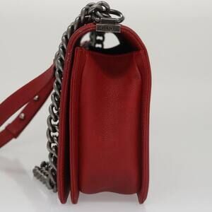 CHANEL Matelasse Chain Shoulder Bag Caviar Skin Red Gold CC