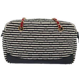 CHANEL Matelasse Chain Shoulder Bag Cotton Black White CC Auth