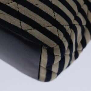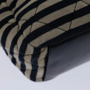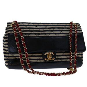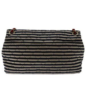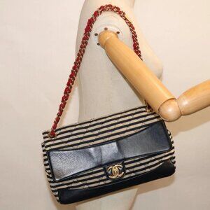 CHANEL Matelasse Chain Shoulder Bag Cotton White Navy CC Auth 69062A