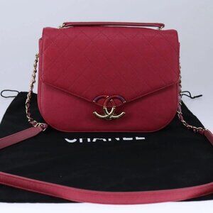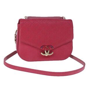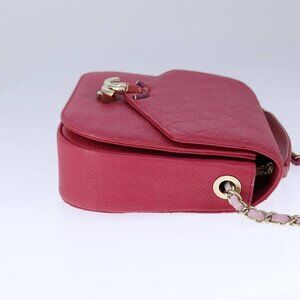 CHANEL Matelasse Chain Shoulder Bag Grained Calf Skin Pink CC Auth