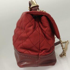 CHANEL Matelasse Chain Shoulder Bag Grained Calf Skin Red CC Auth