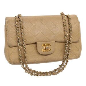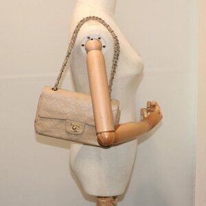 CHANEL Matelasse Chain Shoulder Bag Lamb Skin Beige CC Auth 70454A