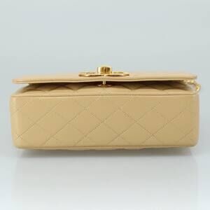 CHANEL Matelasse Chain Shoulder Bag Lamb Skin Beige Gold CC
