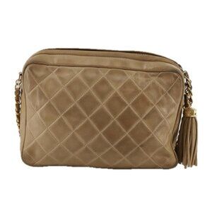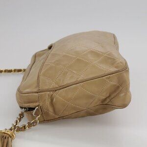 CHANEL Matelasse Chain Shoulder Bag Lamb Skin Beige Gold CC Auth 108395
