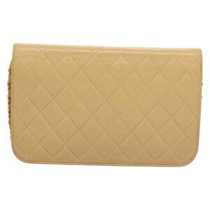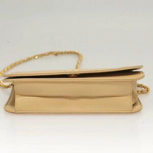 CHANEL Matelasse Chain Shoulder Bag Lamb Skin Beige Gold CC Auth 131435