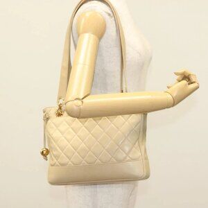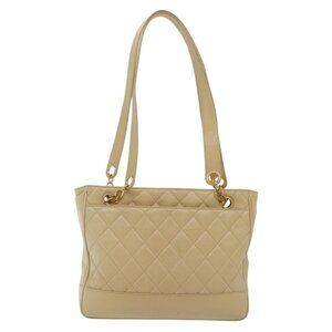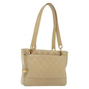 CHANEL Matelasse Chain Shoulder Bag Lamb Skin Beige Gold CC Auth